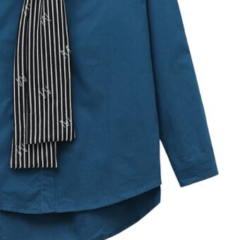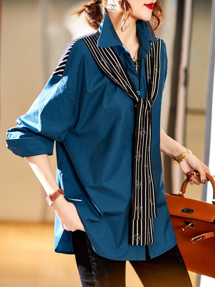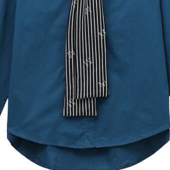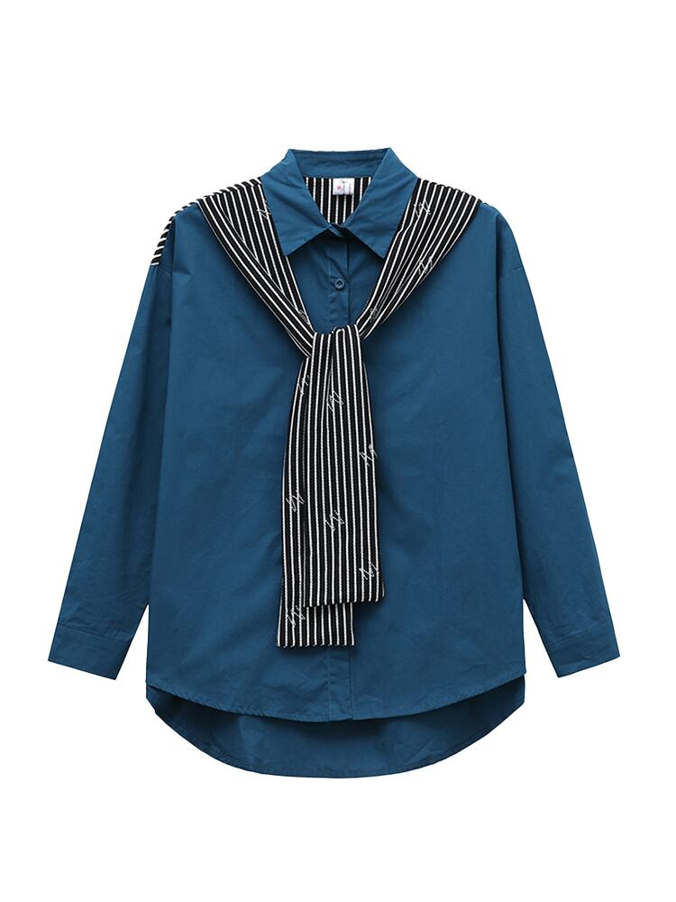 フェイクショールスタイルシャツ トップス シャツ ミドル丈 袖あり 長袖 襟付き ポロカラー ストレート リボン ドッキング 綿 薄手 大人可愛い きれいめ カジュアル 大人 おしゃれ かっこいい 大人女子 こなれ感 ラフ マニッシュ ボーイッシュ ラブリー キュート 個性的 クール モード系 モダン 主役級 存在感 抜け感 無地 春 秋 レディース 女性用 着回し ファッション コーデ スタイル モテ 新作 トレンド 流行 インスタ映え イメチェン 好感度 イメージアップ 注目 話題 新入荷
