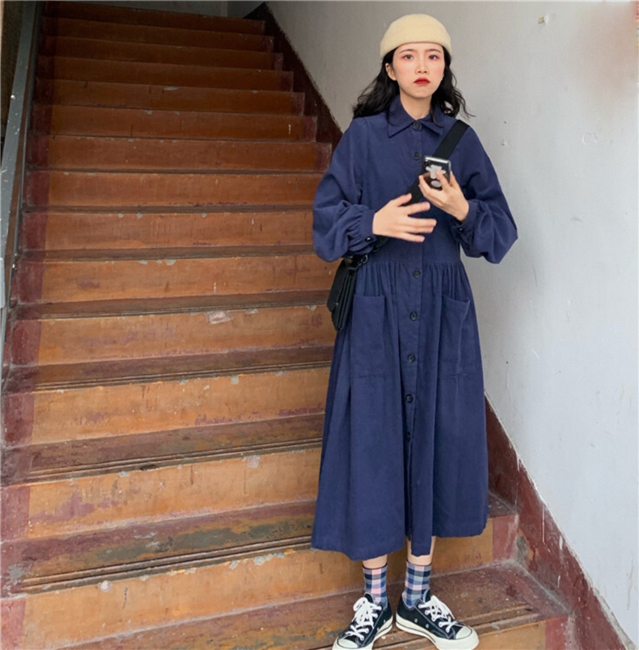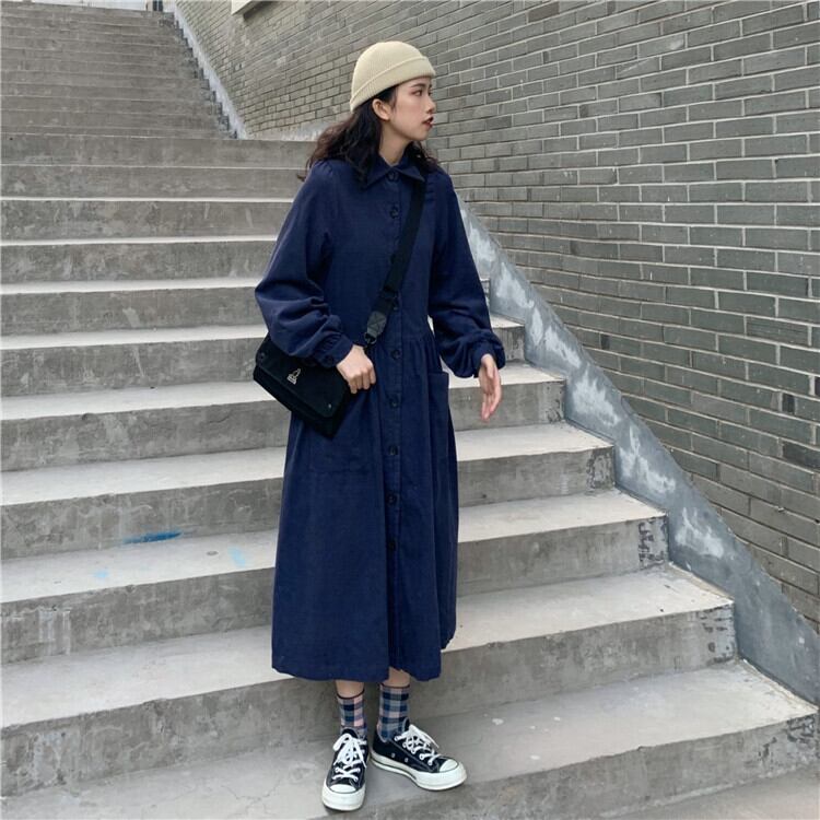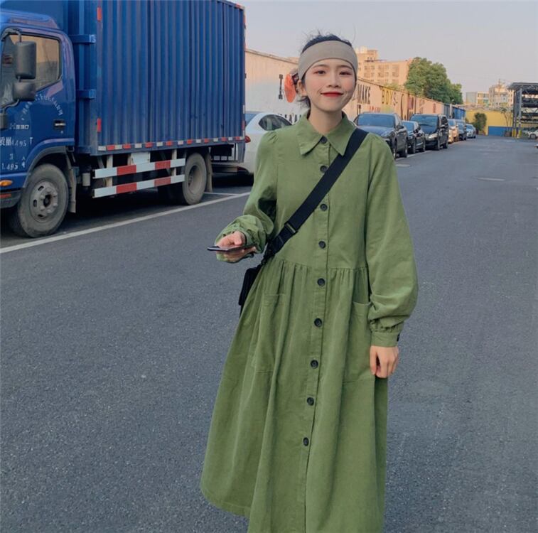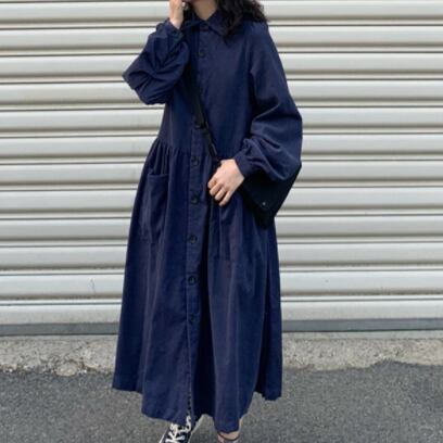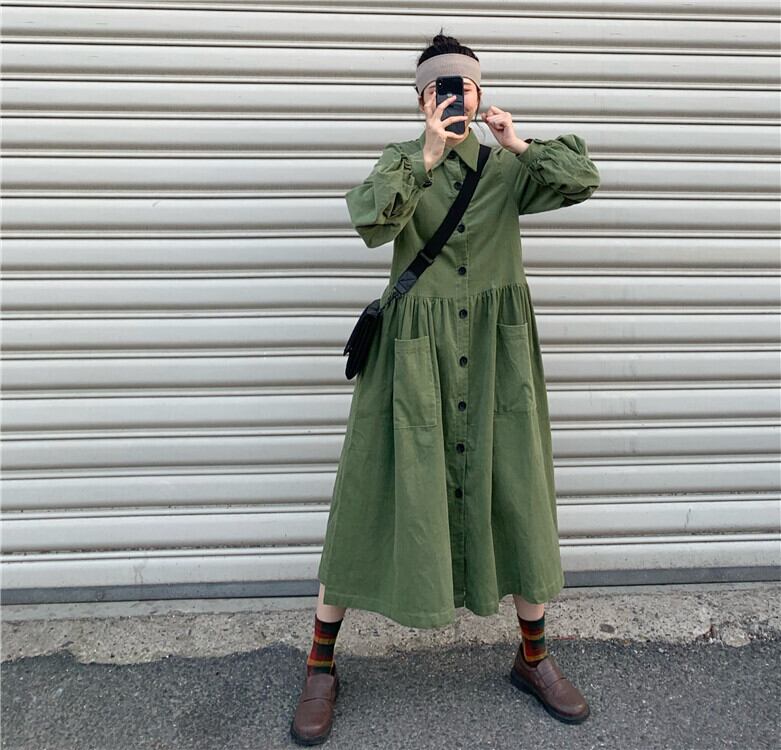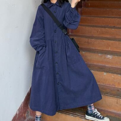 襟付きで品の良さも感じられるので、ちょっとしたお出かけにも最適。着丈もひざ上で、ストッキングやレギンスで足元を合わせれば、まさにおしゃれ感も倍増します。