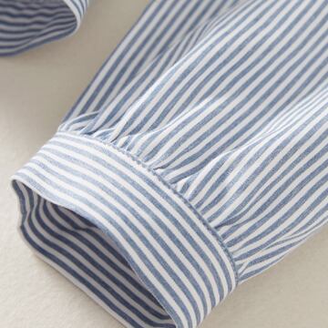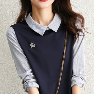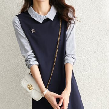 ドッキングワンピース シャツ ジャンパースカート ミドル丈 長袖 パフスリーブ 襟付き ポロカラー ストレート ワイド ドッキング 切り替えデザイン かわいい 大人可愛い きれいめ シンプル 大人 上品 おしゃれ レトロ 大人女子 こなれ感 ラブリー キュート クール エレガント 主役級 抜け感 ストライプ 春 秋 10代 20代 30代 レディース 女性用 オフィス OL 通勤 学生 通学 デート お出かけ 女子会 休日 旅行 着回し 普段使い ファッション コーデ スタイル 体系カバー 定番 トレンド