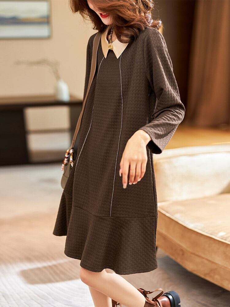 ドールカラーワンピース ミドル丈 袖あり 長袖 襟付き Aライン 切り替えデザイン ワッフル ニット かわいい 大人可愛い きれいめ シンプル 大人 上品 おしゃれ かっこいい レトロ 大人女子 こなれ感 ラブリー キュート 個性的 エレガント モダン 主役級 抜け感 無地 春 秋 誕生日 10代 20代 30代 レディース 女性用 オフィス OL 通勤 学生 通学 デート お出かけ 女子会 休日 パーティー イベント 旅行 ホテル ガーデン レストラン 着回し 普段使い ファッション コーデ スタイル