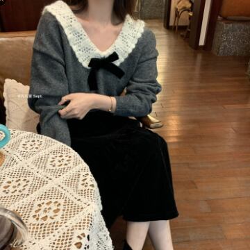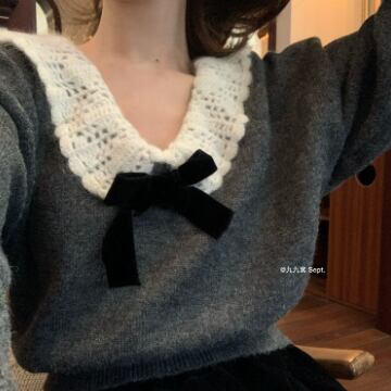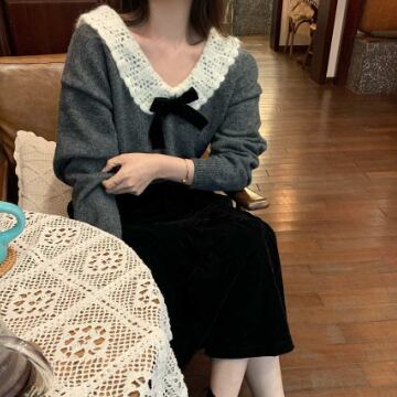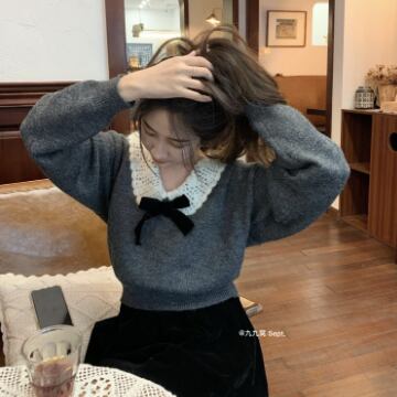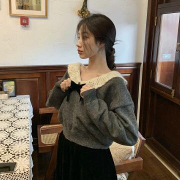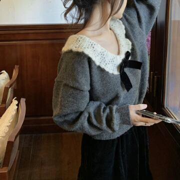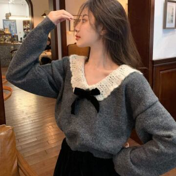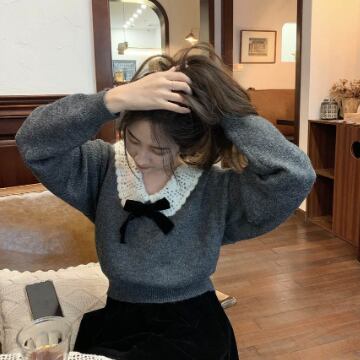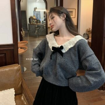 トップス ニットソー セーター 長袖 襟付き リボン ニット かわいい 大人可愛い きれいめ 上品 おしゃれ お洒落 レトロ 大人可愛い 大人女子 ラブリー キュート ガーリー エレガント 主役級 存在感 無地 秋 冬 10代 20代 30代 レディース 女性用 ママ 女の子 学生 デート お出かけ 女子会 お泊まり 休日 着回し 普段使い 韓国 韓国系 ファッション コーデ スタイル 暖かい モテ 新作 定番 送料無料 トレンド 流行 インスタ映え インポート 海外 人気 女子力 大人カジュアル
