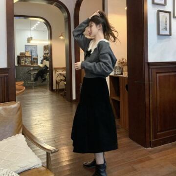 甘いデザインを落ち着いたグレーカラーで仕上げているので、合わせやすい1着です♪