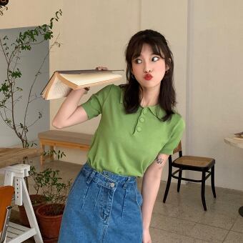 トップス ニットソー セーター ショート ショート丈 半袖 襟付き 丸襟 ニット かわいい 大人可愛い きれいめ 上品 おしゃれ お洒落 レトロ 大人可愛い 大人女子 ラブリー キュート ガーリー 個性的 エレガント 主役級 存在感 柄 春 夏 10代 20代 30代 レディース 女性用 ママ 女の子 学生 デート お出かけ 女子会 お泊まり 休日 着回し 普段使い 韓国 韓国系 ファッション コーデ スタイル 暖かい モテ 新作 定番 送料無料 トレンド 流行 インスタ映え 合わせやすい 女子力 人気