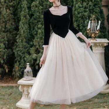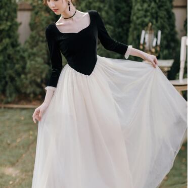 ワンピース ロング ロング丈 長袖 スクエアネック フレア チュール フリル 切り替えデザイン ドッキング かわいい 大人可愛い きれいめ 大人 上品 おしゃれ お洒落 大人可愛い 大人女子 ラブリー キュート ガーリー 個性的 セクシー エレガント 主役級 存在感 無地 春 秋 冬 結婚式 二次会 披露宴 10代 20代 30代 レディース 女性用 女の子 パーティー イベント ホテル レストラン 着回し 韓国 韓国系 ファッション コーデ スタイル モテ 新作 定番 送料無料 トレンド 流行