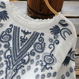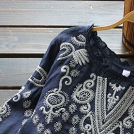 ヴィンテージ感のある刺繍を施したスモックブラウス♪
