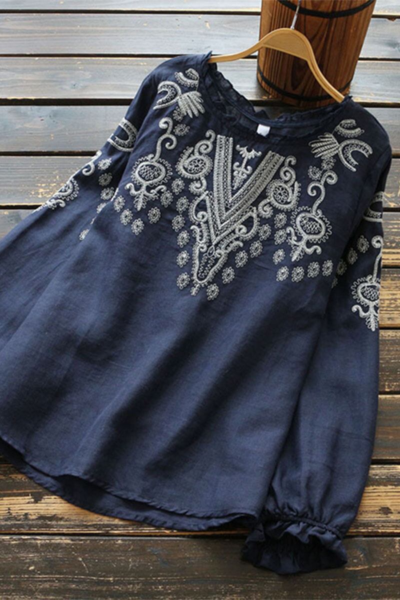刺繍ブラウス トップス ブラウス 袖あり 長袖 ラウンドネック 刺繍 フリル かわいい 大人可愛い きれいめ シンプル カジュアル 大人 上品 おしゃれ お洒落 レトロ 大人可愛い 大人女子 こなれ感 ラブリー キュート ガーリー 個性的 モダン 主役級 存在感 無地 春 夏 秋 10代 20代 30代 レディース デート お出かけ 公園デビュー 女子会 休日 パーティー イベント 着回し 普段使い 重ね着 サイズ M L XL 2XL 3XL 4XL 色展開 白 ホワイト ネイビー
