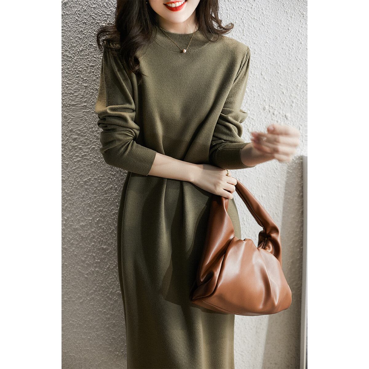 ウールニットワンピースは、冬のおしゃれな装いにぴったりのアイテムです。落ち着いたカラーリングとスマートなIラインシルエットが大人っぽく、ビショップスリーブとミドル丈のデザインが女性らしさを引き出します。このワンピースは、通勤やオフィスにはもちろん、デートや女子会など様々なシーンで活躍してくれます。