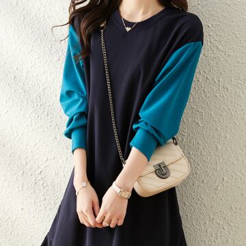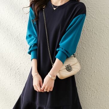 袖ありで冬も活躍し、ミドル丈で足元を選ばないところも魅力的。切り替えのデザインが、よりスタイルアップ効果を発揮してくれます。レトロな雰囲気もありながら、個性的で抜け感のあるデザインが、クールな印象を与えます。