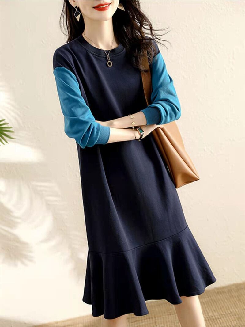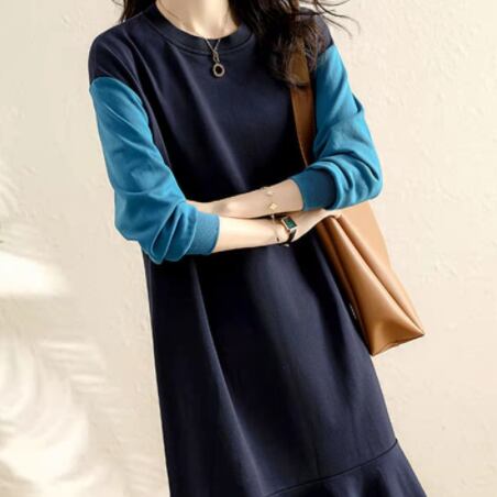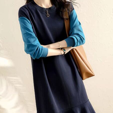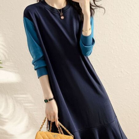 ニットワンピース ミドル丈 袖あり 長袖 ラウンドネック 襟なし Aライン 切り替えデザイン ニット 薄手 大人可愛い きれいめ シンプル 大人 上品 おしゃれ かっこいい レトロ 大人女子 こなれ感 個性的 クール モード系 セクシー エレガント モダン 主役級 存在感 抜け感 無地 春 秋 冬 10代 20代 30代 レディース 女性用 オフィス OL 通勤 学生 通学 デート お出かけ 女子会 休日 パーティー イベント リゾート 旅行 ホテル ガーデン レストラン 着回し 普段使い
