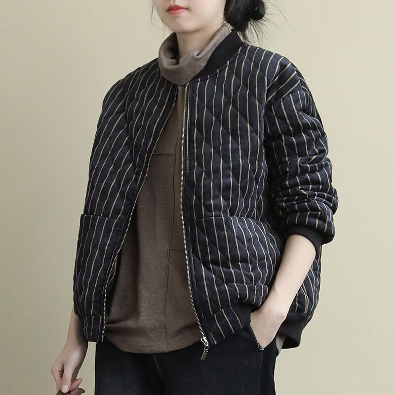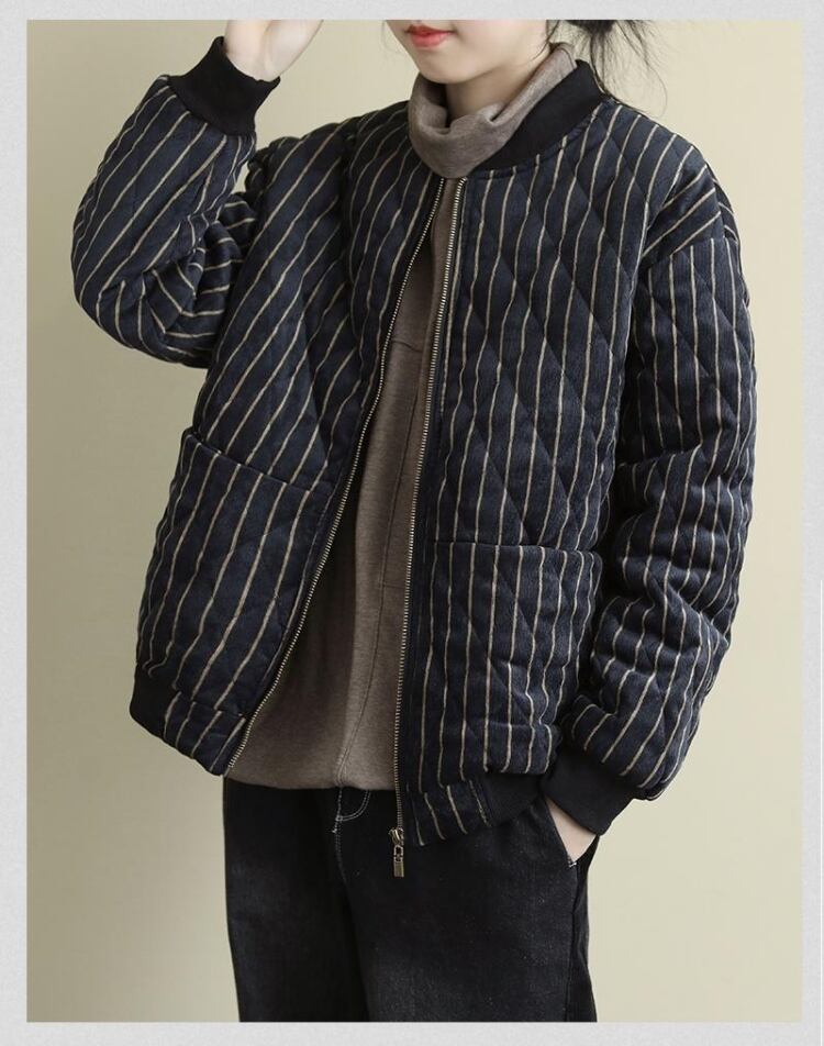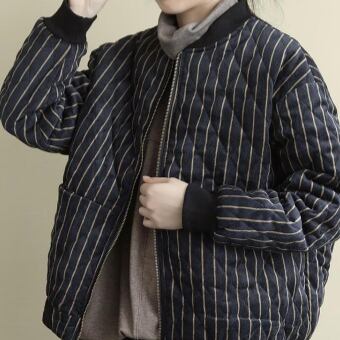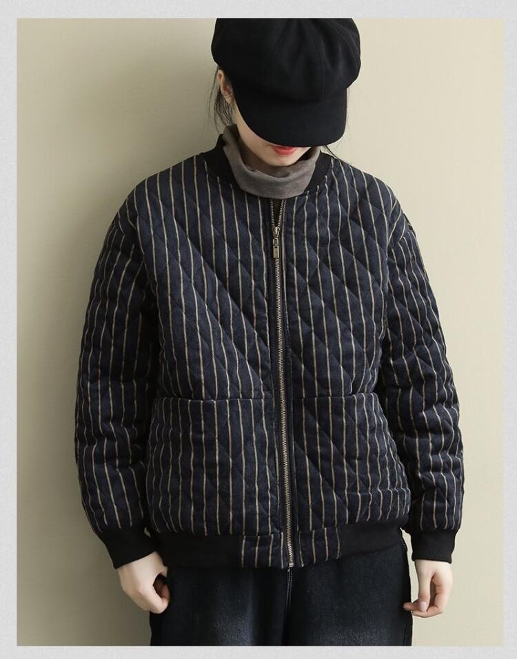 ストライプ柄が大人可愛い魅力的なキルティングジャケット♪