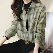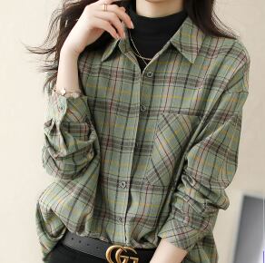 チェック柄シャツブラウス トップス シャツ ブラウス ミドル丈 袖あり 長袖 ビショップ・スリーブ 襟付き ポロカラー Iライン 前開き ボタン 綿 薄手 大人可愛い きれいめ カジュアル 大人 上品 おしゃれ 大人女子 こなれ感 ラフ マニッシュ キュート ルーズ 個性的 抜け感 チェック柄 春 秋 レディース 女性用 デート お出かけ 公園デビュー 休日 アウトドア 旅行 着回し 普段使い ファッション コーデ スタイル 暖かい モテ 新作 トレンド 流行 インスタ映え 即納 イメチェン 好感度