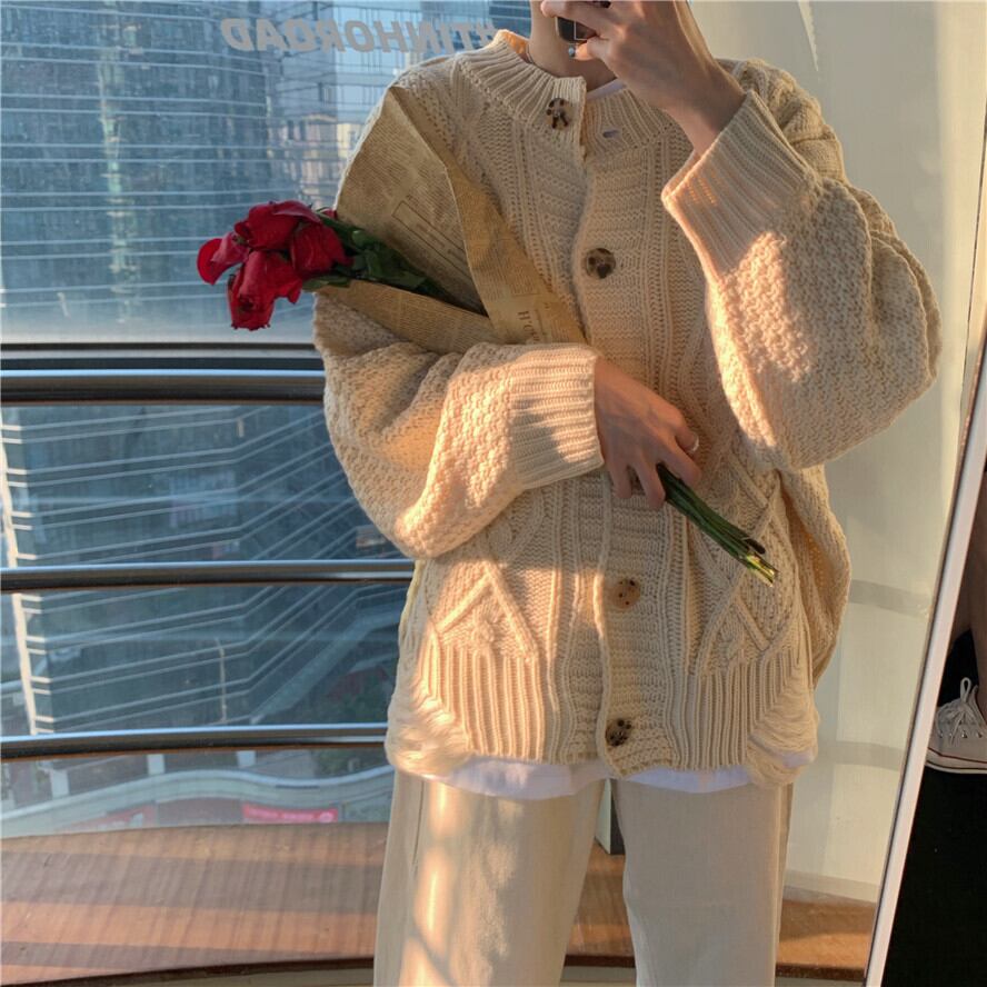 トップス セーター カーディガン 長袖 ラウンドネック ケーブルニット 編み込み 厚手 かわいい 大人可愛い シンプル カジュアル 上品 おしゃれ お洒落 レトロ 大人可愛い 大人女子 こなれ感 ラブリー キュート ガーリー ルーズ 主役級 存在感 春 秋 冬 10代 20代 30代 レディース 女性用 ママ 女の子 学生 デート お出かけ 女子会 お泊まり 休日 着回し 普段使い 韓国 韓国系 ファッション コーデ スタイル 楽ちん 暖かい モテ 新作 定番 送料無料 トレンド 流行 ゆったり 海外