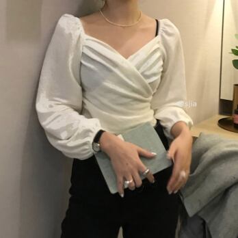 シックでフェミニンな雰囲気が魅力のこのトップス。あなただけのスタイリングで、輝く女性を演出してください。