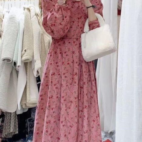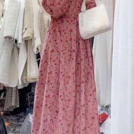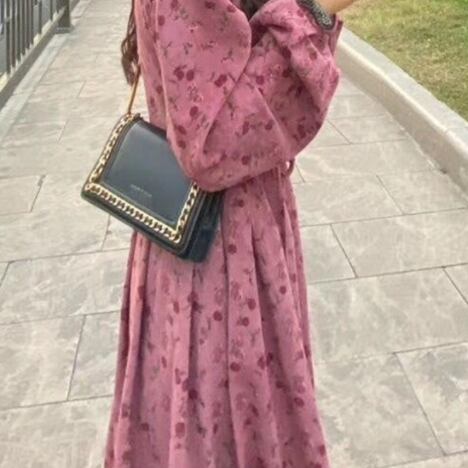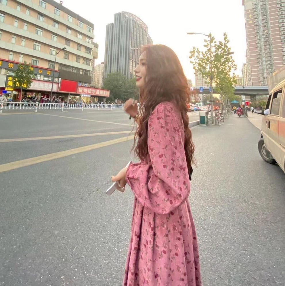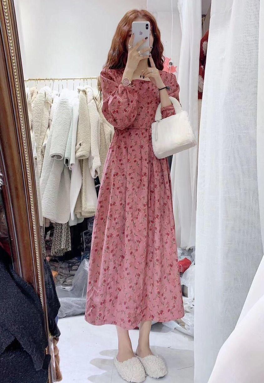 ふんわり袖 タックフレア フローラル ワンピース 膝下 ミモレ丈 ミディアム丈 長袖 ボリューム袖 パフスリーブ スクエアネック Aライン 切り替えデザイン ウエストリボン コーデュロイ かわいい 大人可愛い きれいめ シンプル カジュアル 上品 おしゃれ レトロ ガーリー ルーズ 花柄 秋 冬 レディース 女の子 学生 通学 デート お出かけ 女子会 休日 普段使い 重ね着 韓国系 オルチャン コーデ 体系カバー 脚長 M L XL 2XL 3XL 4XL 大きいサイズ レッド くすみカラー