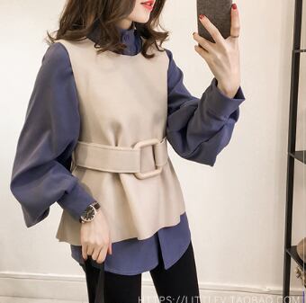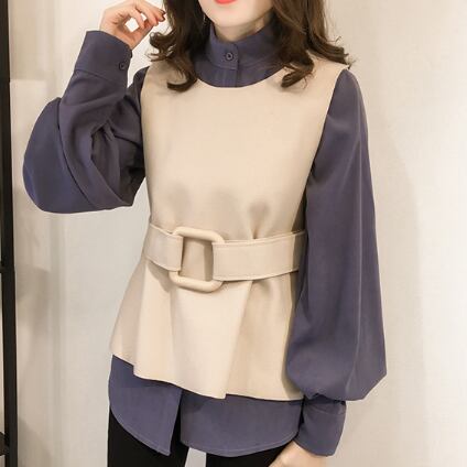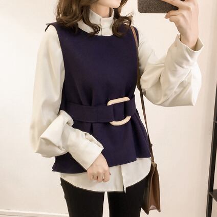 ツーピース トップス シャツ ブラウス ベスト シンプル アプリコット ブルー 青 レギュラー丈 袖あり 長袖 スタンドカラー ストレート シングルブレスト ボタン ベルト 大人女子 大人 上品 おしゃれ きれいめ シンプル デイリーウェア レトロ レトロ風 こなれ感 個性的 デザイン 主役級 存在感 無地 秋 冬 20代 30代 40代 レディース 女性用 オフィス ビジネス OL 通勤 重ね着 レイヤード トレンド M L XL 大きいサイズ 2XL 3XL 4XL