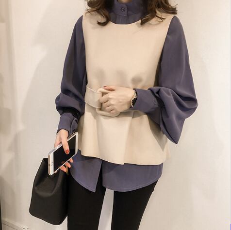 長袖シャツ+ベストのツーピースセット