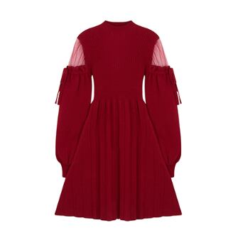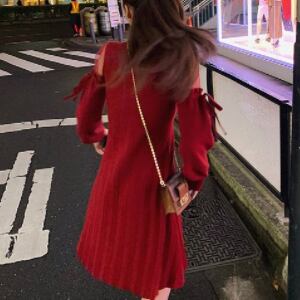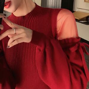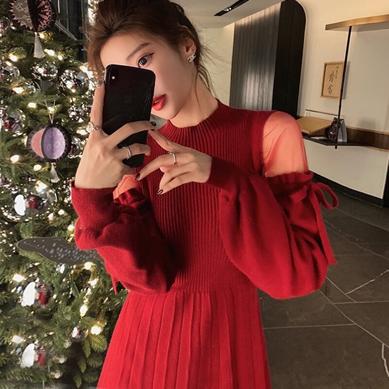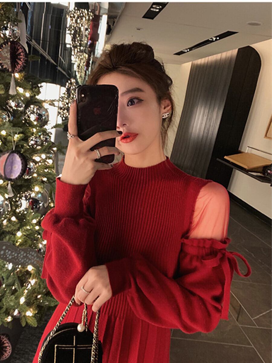 ニットワンピース シンプル レッド 赤 ミドル丈 袖あり 長袖 ハイネック スリム 細身 タイト 透け感 シアー 大人女子 大人 上品 おしゃれ エレガント レトロ レトロ風 こなれ感 キュート かわいい 女子 個性的 デザイン 主役級 存在感 無地 秋 オータム 冬 ウインター 20代 10代 レディース 女性用 デート お出かけ 女子会 食事会 イベント リゾート 旅行 着回し 普段使い M L XL 大きいサイズ 2XL 3XL 4XL ヴィヴィッドカラー 原色