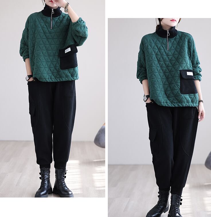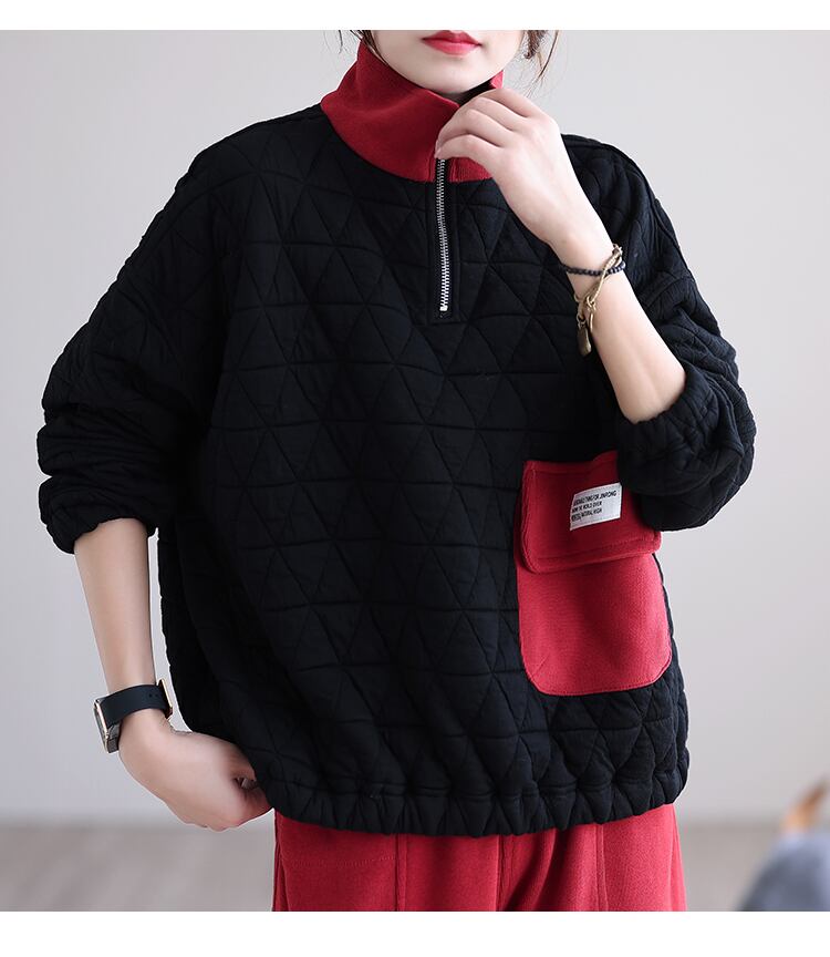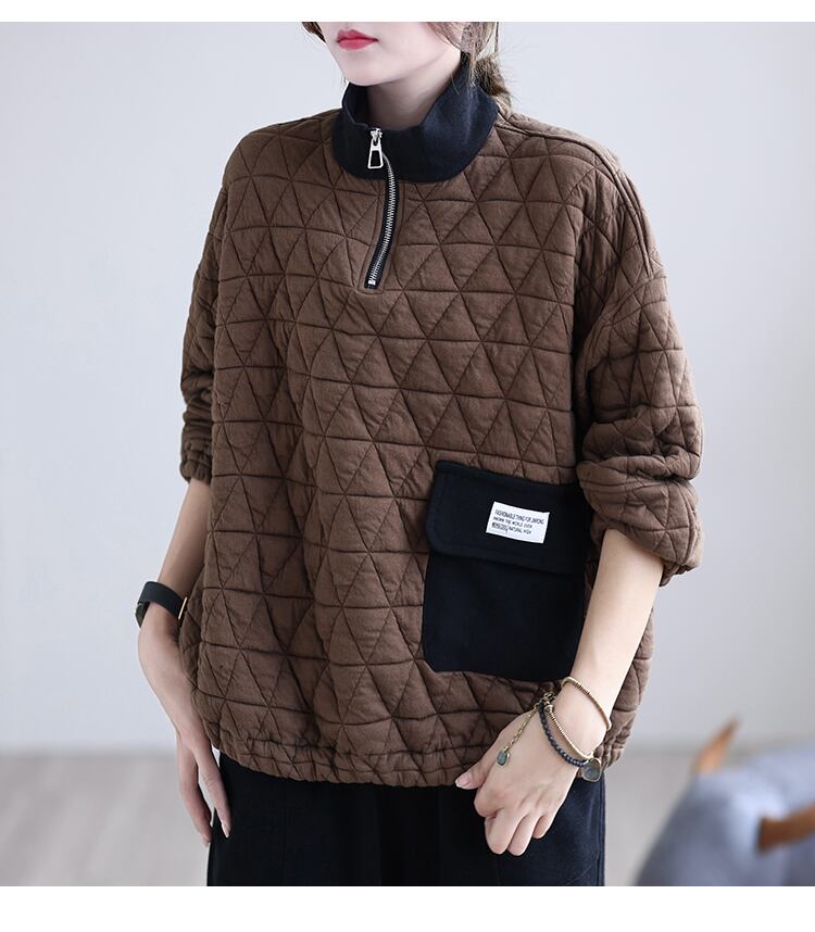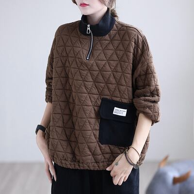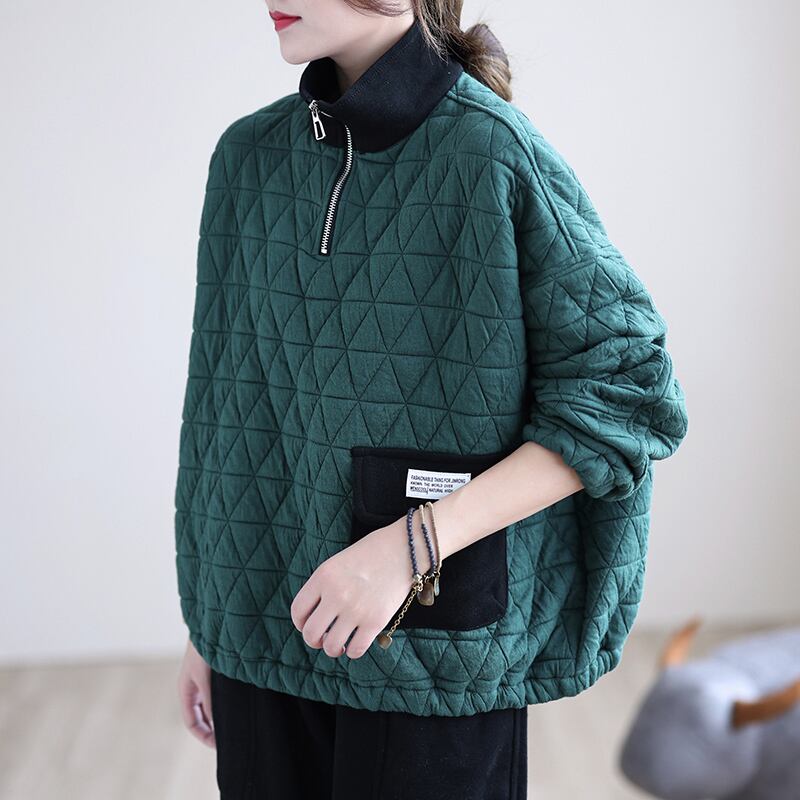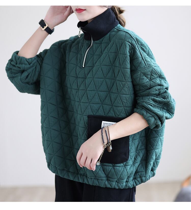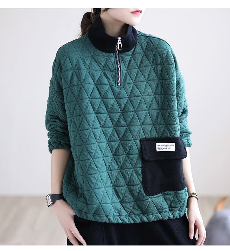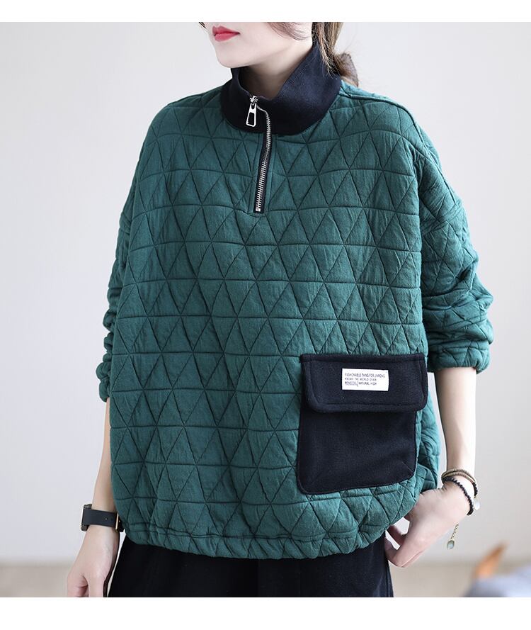 キルティングプルオーバー トップス プルオーバー 袖あり 長袖 ハイネック ファスナー 綿 かわいい 大人可愛い きれいめ シンプル カジュアル 大人 上品 おしゃれ お洒落 レトロ 大人可愛い 大人女子 こなれ感 ラフ ラブリー キュート ガーリー 個性的 モダン 主役級 存在感 無地 秋 冬 10代 20代 30代 レディース 学生 通学 デート お出かけ 公園デビュー 女子会 休日 着回し 普段使い 重ね着 サイズ L XL 2XL 色展開 黒 ブラック 緑 グリーン 茶色 ブラウン