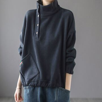ハイネックボタントップス トップス セーター プルオーバー 袖あり 長袖 ハイネック 綿 かわいい 大人可愛い シンプル カジュアル 大人 上品 おしゃれ お洒落 レトロ 大人可愛い 大人女子 こなれ感 ラフ メンズライク ボーイッシュ スポーティー 個性的 クール モダン 主役級 存在感 無地 秋 冬 10代 20代 30代 レディース 学生 通学 デート お出かけ 公園デビュー 女子会 休日 着回し 普段使い 重ね着 サイズ M L XL 2XL 色展開 黒 ブラック