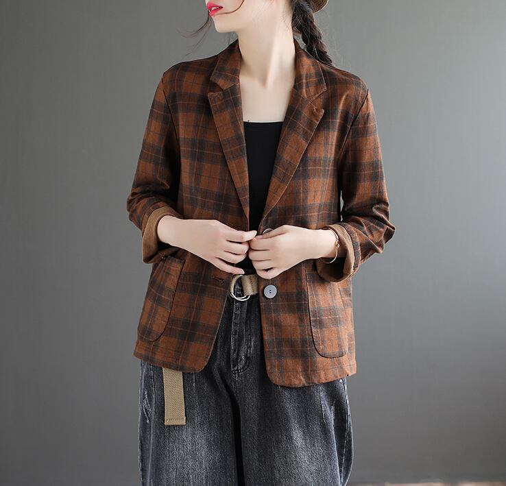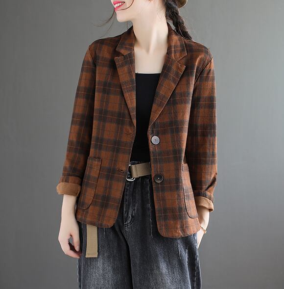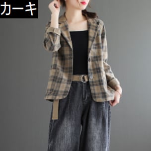 チェック柄ジャケット アウター ジャケット 袖あり 長袖 Vネック 襟付き 前開き 綿 かわいい 大人可愛い きれいめ シンプル カジュアル 大人 上品 おしゃれ お洒落 レトロ 大人可愛い 大人女子 こなれ感 ラフ メンズライク 個性的 クール モダン 主役級 存在感 柄 チェック柄 春 秋 10代 20代 30代 レディース OL 通勤 学生 通学 デート お出かけ 公園デビュー 女子会 休日 着回し 普段使い 重ね着 サイズ M L XL 2XL 色展開 茶色 ブラウン 灰色 グレー カーキ