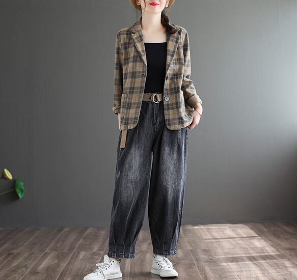 テーラード型なのできちんと感も演出するチェック柄ジャケット♪