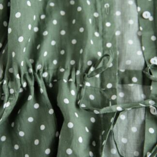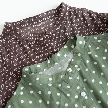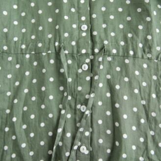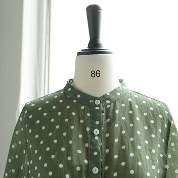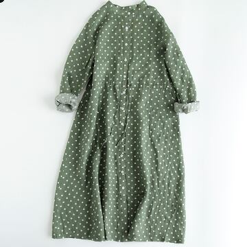 おしゃれで女性らしい、ドット柄シャツワンピースのご紹介です。袖ありで長袖タイプの商品で、明るい水玉柄が春夏秋にぴったりです。スタンドカラーで前開きのデザインは、フレアでウエストマークも付いているので、体型カバーもできてとっても可愛く決まります。カジュアルなコーディネートから、きれいめのスタイルまであらゆる場面で活躍します。