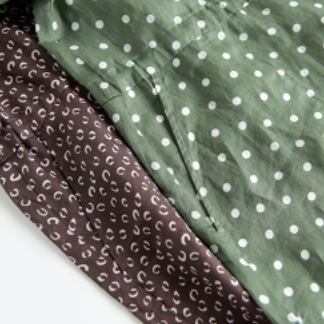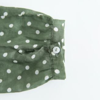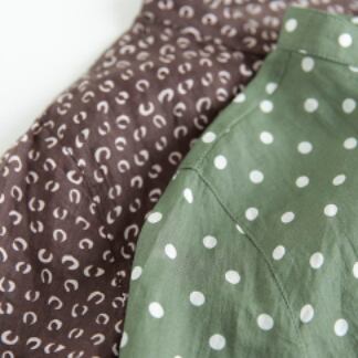 甘くなりがちなドット柄も、辛口なシャツデザインなので大人な印象に◎