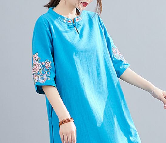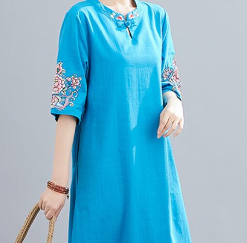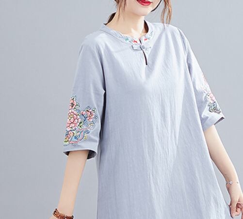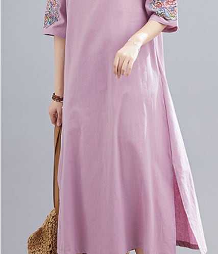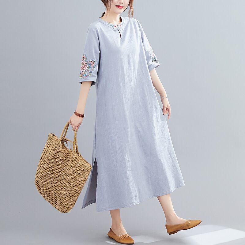 エスニックワンピース ワンピース ミモレ丈 半袖 ラウンドネック フレア Aライン 刺繍 綿 薄手 かわいい 大人可愛い きれいめ シンプル 大人 上品 おしゃれ レトロ アジアン エスニック 大人女子 ラフ 無地 柄 フラワー 春 夏 母の日 10代 20代 30代 40代 50代 60代 レディース ママ 女の子 お出かけ お泊まり 休日 リゾート 着回し 普段使い ファッション コーデ スタイル 楽ちん 体系カバー M L XL 2XL ゆったり 青 ブルー 緑 グリーン 灰色