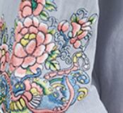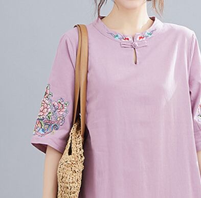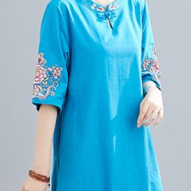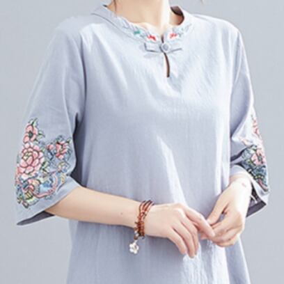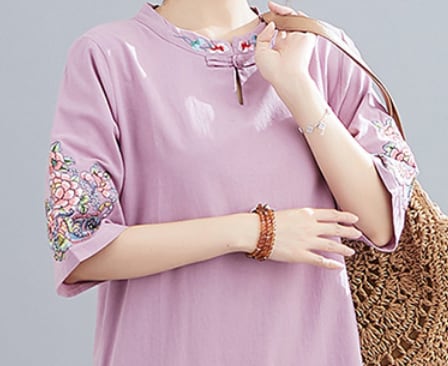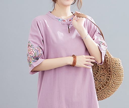 刺繍が施されたエスニックな雰囲気は、レトロでアジアンなムードを醸し出します。綿素材でさらっとした肌触りも心地よく、薄手で軽くて着心地も抜群。夏の暑さにも負けない清涼感あふれる一枚です。