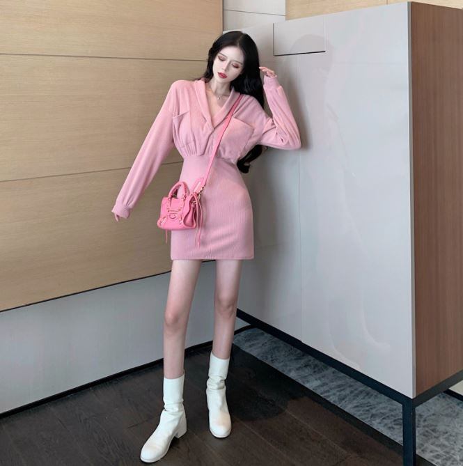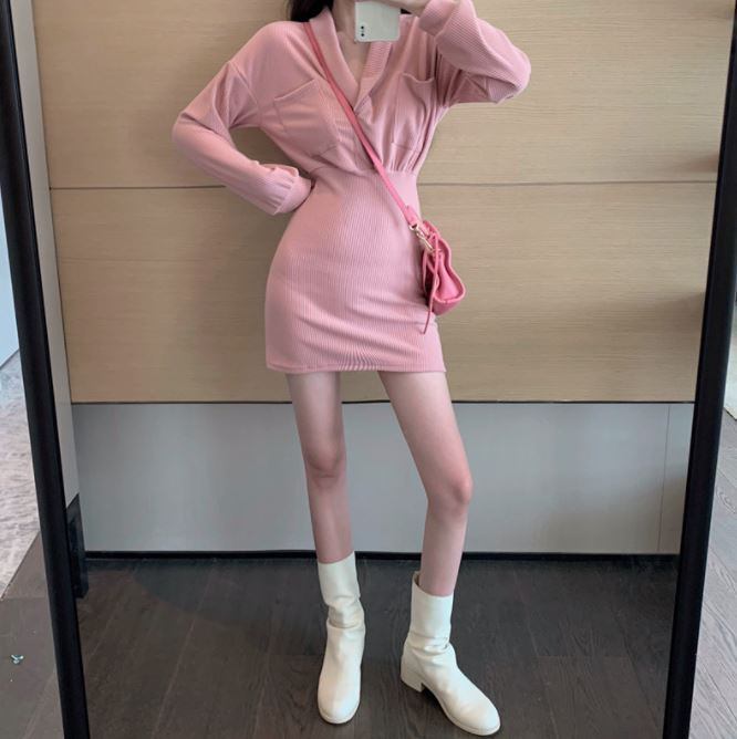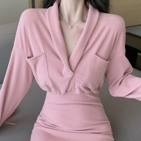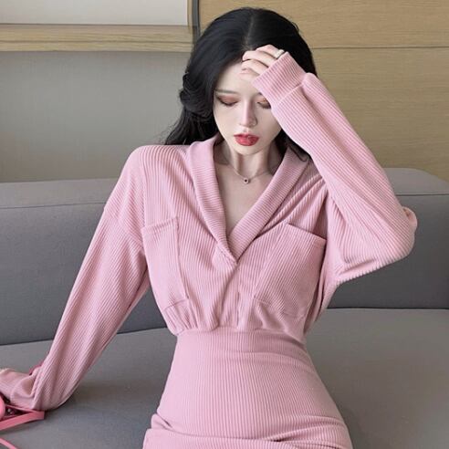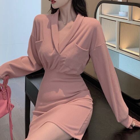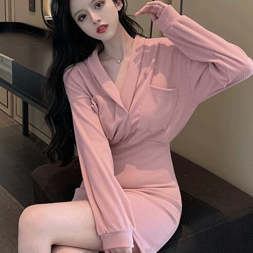ニットミニワンピース ワンピース ショート ショート丈 袖あり 長袖 襟付き ショールカラー スリム タイト 細身 ポケット ハイウエスト リブ ニット かわいい 大人可愛い きれいめ 大人 おしゃれ レトロ 大人可愛い 大人女子 こなれ感 ラブリー キュート 個性的 セクシー エレガント 主役級 存在感 抜け感 無地 秋 冬 10代 20代 オフィス OL 通勤 学生 通学 デート お出かけ 女子会 パーティー イベント ホテル レストラン 普段使い ファッション コーデ スタイル 体系カバー 美脚