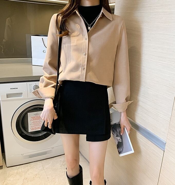 胸スリットポケット 飾りボタン 畝なし コーデュロイ 羽織りもの トップス シャツ ブラウス ミディアム丈 長袖 ドロップショルダー 襟付き 前開き 綿 きれいめ シンプル カジュアル 上品 おしゃれ かっこいい 大人女子 こなれ感 無地 秋 冬 レディース ママ 女の子 OL 通勤 学生 通学 デート お出かけ 女子会 休日 着回し 普段使い 重ね着 韓国系 オルチャン スタイル コーデ 体系カバー XS S M L 大きめ ゆったり ホワイト グレーブルー ブラウン ミルクティー カラバリ