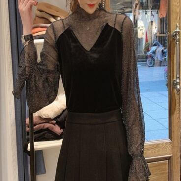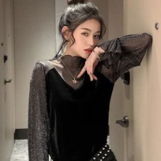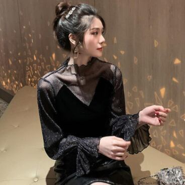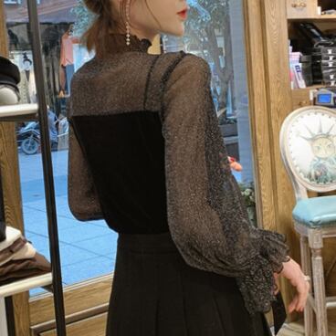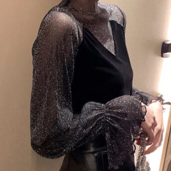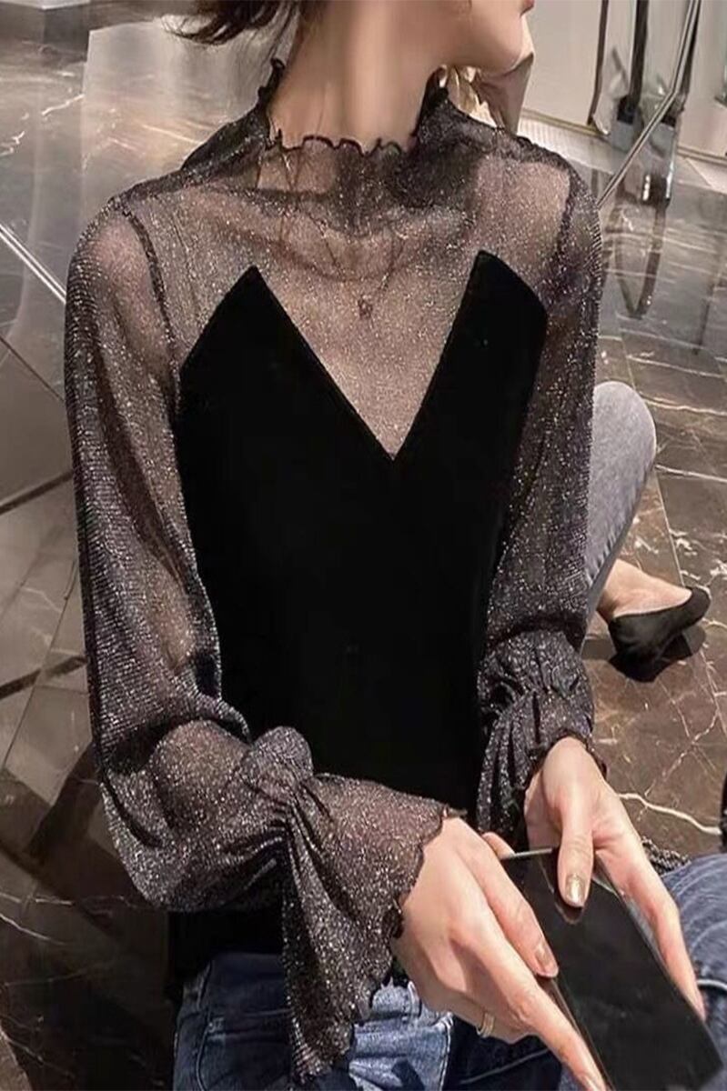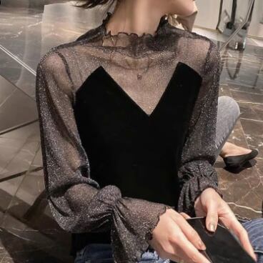 メッシュシャツ トップス シャツ ブラウス モダン ブラック 黒 袖あり 長袖 ボリューム袖 ハイネック スリム 細身 タイト フリル 透け感 シアー ポリエステル 大人女子 大人 上品 おしゃれ エレガント レトロ レトロ風 こなれ感 個性的 デザイン 主役級 存在感 無地 20代 10代 レディース 女性用 イベント リゾート 旅行 パーティ ディナー 重ね着 レイヤード トレンド ファッション コーデ 細見え スタイル M L XL モノトーン