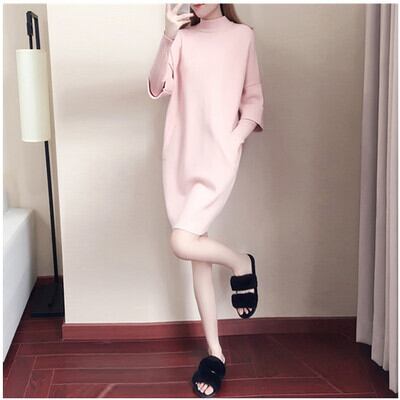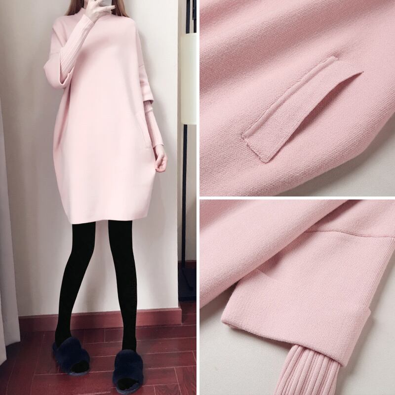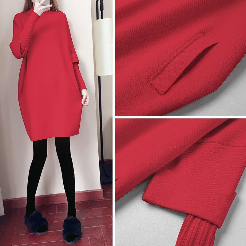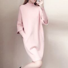 ニットワンピース トップス プルオーバー ブラック 黒 ピンク レッド 赤 ひざ丈 袖あり 長袖 ハイネック 大人女子 大人 上品 おしゃれ きれいめ シンプル デイリーウェア レトロ レトロ風 こなれ感 ルーズ シルエット ラフ キュート かわいい 女子 個性的 デザイン 主役級 存在感 無地 秋 オータム 冬 ウインター 20代 10代 30代 40代 レディース 女性用 オフィス ビジネス OL 通勤 学生 学校 通学 着回し 普段使い S M L XL