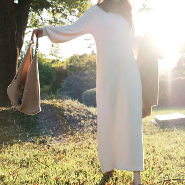 ニットワンピースは、シンプルなデザインでありながら、一枚で存在感のあるファッションアイテムです。Vネックでデコルテラインが綺麗に見えるので、大人女子にぴったりです。袖にはボリュームがあってフェミニンな雰囲気を醸し出し、ランタンスリーブがこなれ感を演出します。黒とアプリコットの2色展開なので、好きな色を選んで個性的なスタイリングを楽しめます。ミドル丈・ロング丈の2サイズあり、美しいシルエットを叶えてくれます。これからの季節に活躍する爽やかなコットン素材で作られ、こなれたルーズなシルエットが大人の女性に好評。普段使いはもちろん、ちょっとしたお出かけにも最適です。ワンサイズから大きいサイズでも展開されているので、妊娠中のマタニティーの方も気軽に着用できます。この一枚で、オシャレな大人の女性のファッションを演出する主役級の存在感を放ちます。ぜひ、あなたのワードローブに加えてください。