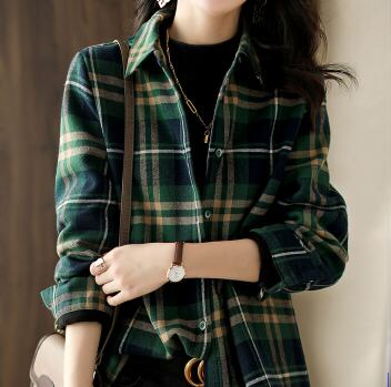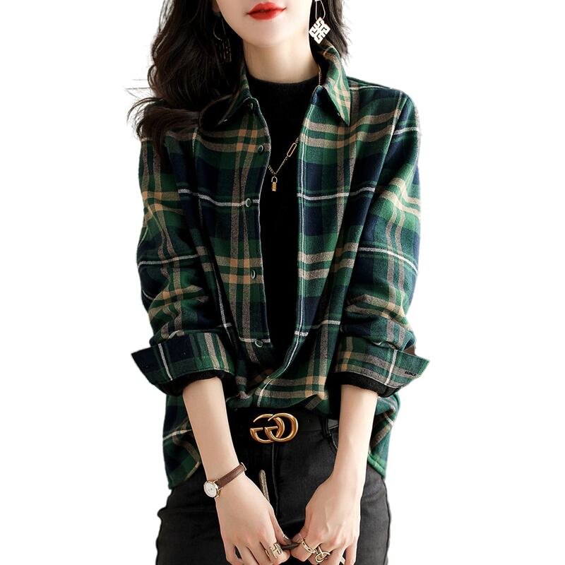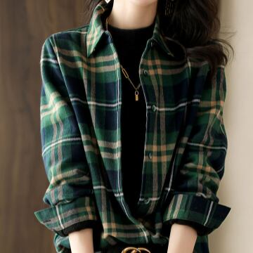 チェック柄シャツ トップス シャツ ブラウス カジュアル グリーン 緑 レギュラー丈 袖あり 長袖 襟付き ストレート シングルブレスト ボタン 綿 コットン 大人女子 大人 上品 おしゃれ デイリーウェア レトロ レトロ風 こなれ感 ルーズ シルエット ラフ 主役級 存在感 柄 チェック柄 秋 冬 春 スプリング 20代 10代 30代 40代 レディース 女性用 オフィス ビジネス OL 通勤 学生 学校 通学 着回し 普段使い 重ね着 レイヤード S M L XL