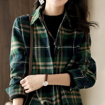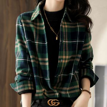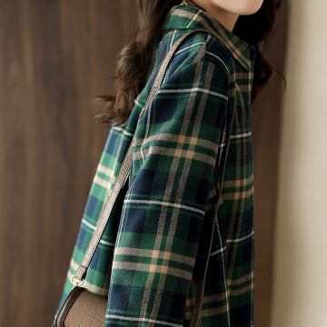 柔らかな風合いが魅力のチェック柄シャツです。様々なカジュアルスタイルに合わせやすく、大人女子から年齢を問わず幅広い世代におすすめの一枚です。緑をベースに採用した、レトロ風のチェック柄が存在感を放ち、こなれ感を演出してくれます。レギュラー丈でストレートなシルエットが、ラフでありながらも上品な雰囲気を醸し出します。袖ありの長袖で、長期にわたってお使いいただけます。