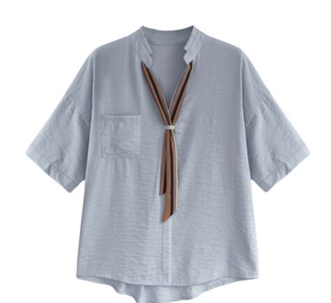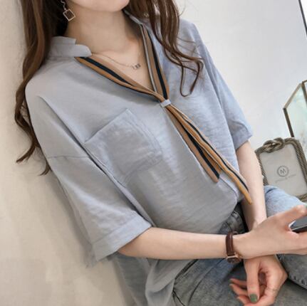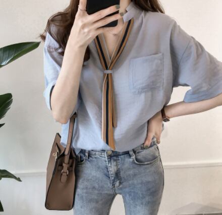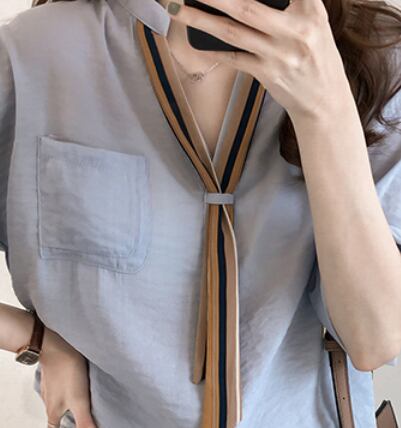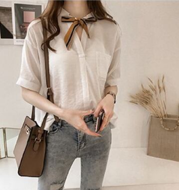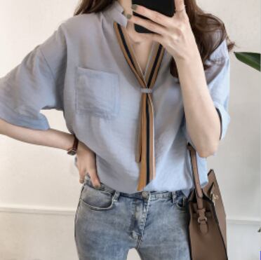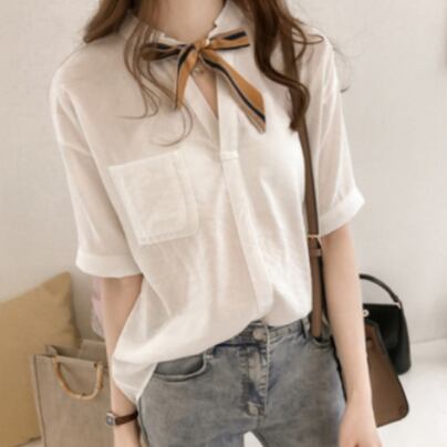 薄手のリボンネクタイ付き半袖ブラウスです。