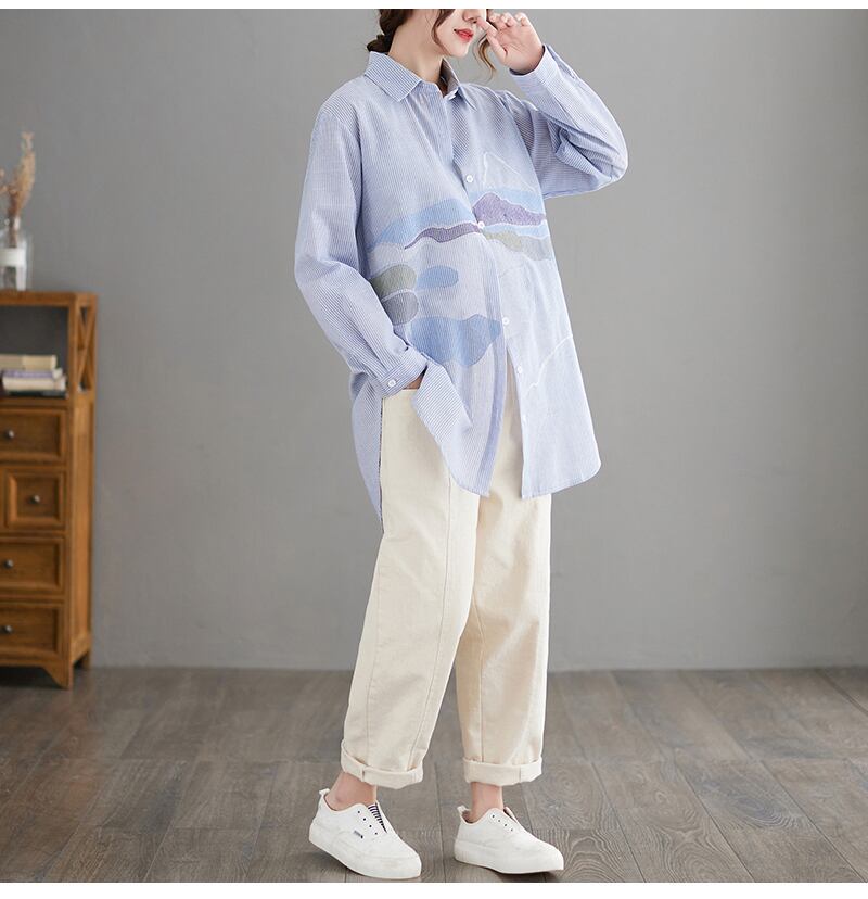 ストライプシャツ トップス シャツ ブラウス 袖あり 長袖 襟付き 前開き かわいい 大人可愛い きれいめ シンプル カジュアル 大人 上品 おしゃれ お洒落 レトロ 大人可愛い 大人女子 こなれ感 ラフ ラブリー キュート ガーリー 個性的 モダン 主役級 存在感 柄 ストライプ 春 秋 10代 20代 30代 レディース OL 通勤 学生 通学 デート お出かけ 公園デビュー 女子会 休日 着回し 普段使い 重ね着 サイズ M L XL 2XL 3XL 色展開 ブラック ブルー