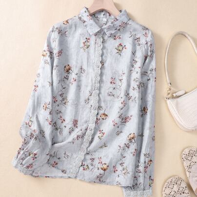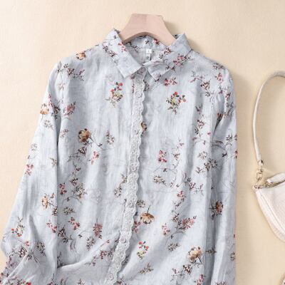 花柄シャツ トップス シャツ ブラウス 袖あり 長袖 襟付き レース 前開き かわいい 大人可愛い きれいめ シンプル カジュアル 大人 上品 おしゃれ お洒落 レトロ 大人可愛い 大人女子 こなれ感 ラフ ラブリー キュート ガーリー 主役級 存在感 柄 花柄 小花柄 フラワー 春 秋 10代 20代 30代 レディース 学生 通学 デート お出かけ 公園デビュー 女子会 休日 着回し 普段使い 重ね着 韓国系 オルチャン サイズ S M L XL