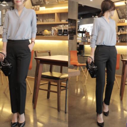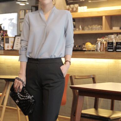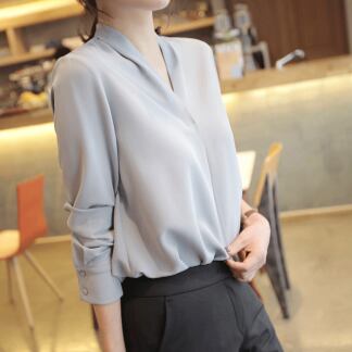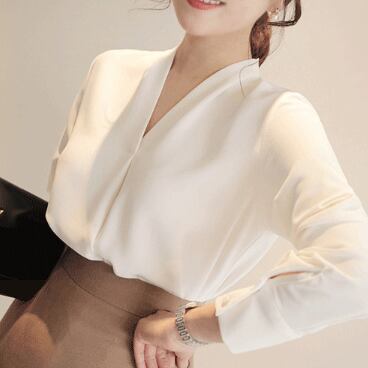 シンプルなVネック長袖ブラウスです。