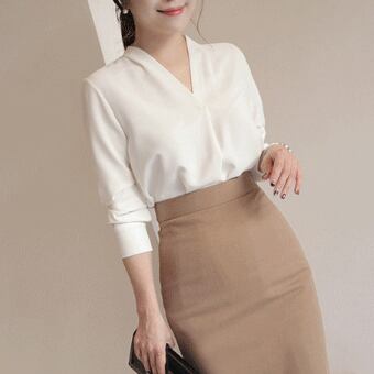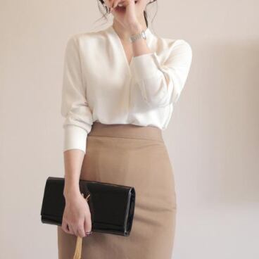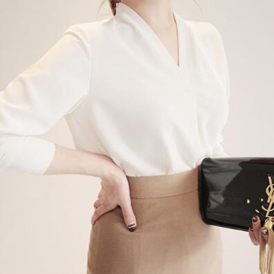 洗練されたVネックのデザインが魅力の長袖ブラウス。ストレートなシルエットがスタイリッシュで、シンプルなデザインなので様々なスタイリングに合わせやすく、オールシーズン活躍します。素材はしっかりとした生地感で、長時間着ていても快適。白色は清潔感があり、フォーマルな場面でも活躍する上品なアイテムです。ビジネスシーンはもちろん、おしゃれな普段着やフォーマルな場面でも活用してください。上品で存在感のある一枚で、世代を問わず幅広い方におすすめです。着回し力も高く、1枚持っていると便利です。存分にお楽しみください。