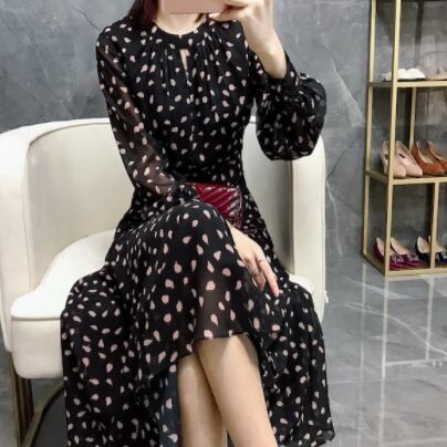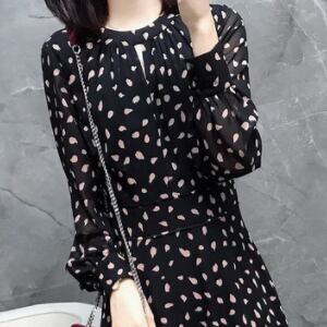フェミニンなドット柄のフレアワンピースが登場しました!ラウンドネックで袖ありの上品なデザインで、ハイウエストからフレアに広がるシルエットが女性らしさを引き立てます。大人可愛い雰囲気があり、カジュアルからきれいめまで様々なシーンで活躍すること間違いなしです。素材には、しなやかで風合いのあるポリエステルを使用しているため、着心地も抜群です。重ね着やアウターとの相性も良く、長い期間着回しができる優秀アイテムです。ロング丈で、ジャケットやカーディガンを羽織ると上品に決まり、パーティーやイベントにもぴったり。女子会やデートにもおすすめです。主役級の存在感を放つ、ドット柄フレアワンピース。この春秋のマストアイテムとして、ぜひお手元に置いてください。