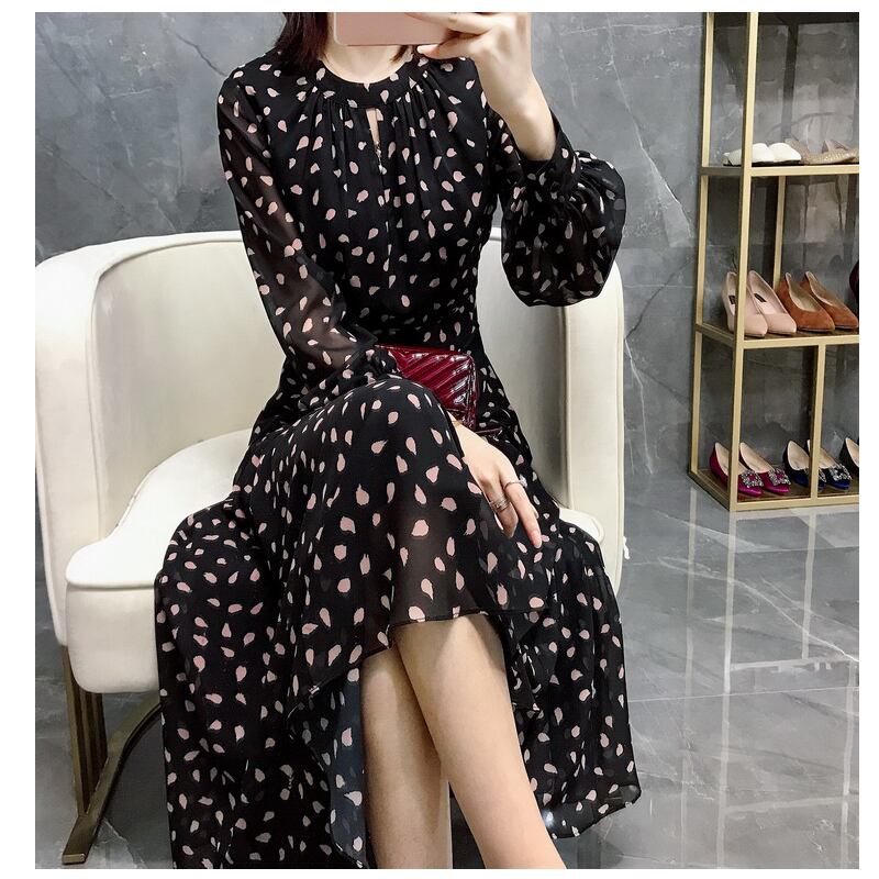 ドット柄ワンピース ワンピース フレアワンピース ロング ロング丈 袖あり 長袖 ラウンドネック フレア ハイウエスト ポリエステル かわいい 大人可愛い きれいめ シンプル カジュアル 大人 上品 おしゃれ お洒落 レトロ 大人可愛い 大人女子 こなれ感 ラフ ラブリー キュート ガーリー 主役級 存在感 柄 ドット柄 水玉 春 秋 10代 20代 30代 レディース 学生 通学 デート お出かけ 公園デビュー 女子会 休日 パーティー イベント 着回し 普段使い 重ね着 サイズ XL 2XL