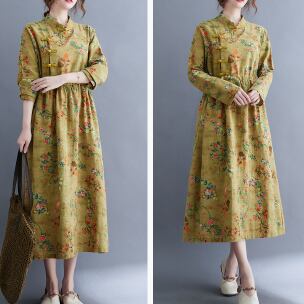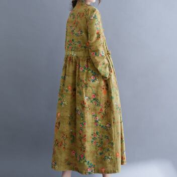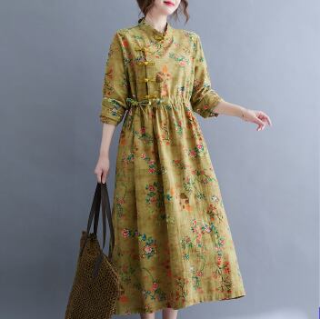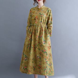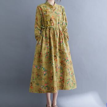 花柄ワンピース ワンピース フレアワンピース ミモレ ミモレ丈 袖あり 長袖 スタンドカラー フレア ハイウエスト 綿 かわいい 大人可愛い きれいめ シンプル カジュアル 大人 上品 おしゃれ お洒落 レトロ 大人可愛い 大人女子 こなれ感 ラフ ラブリー キュート ガーリー 主役級 存在感 柄 花柄 フラワー 春 秋 10代 20代 30代 レディース 学生 通学 デート お出かけ 公園デビュー 女子会 休日 パーティー イベント 着回し 普段使い 重ね着 サイズ M L XL 2XL 色展開 黄色