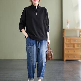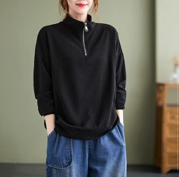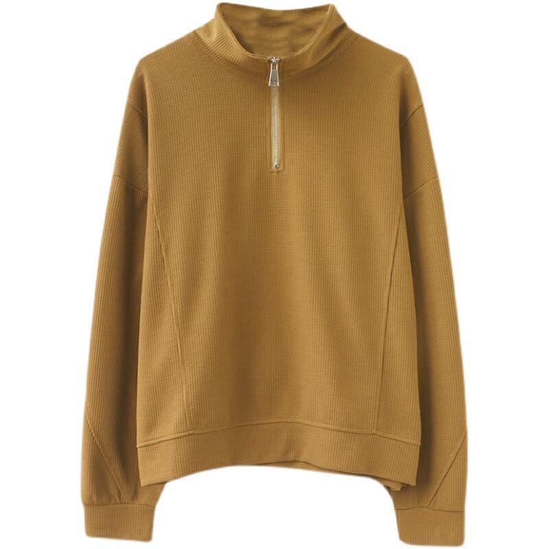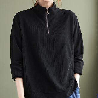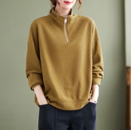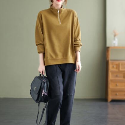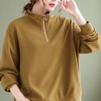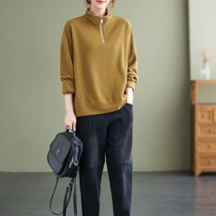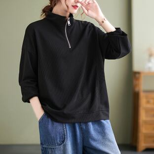 ハーフジッププルオーバー トップス プルオーバー 袖あり 長袖 ハイネック ファスナー 綿 かわいい 大人可愛い シンプル カジュアル 大人 上品 おしゃれ お洒落 レトロ 大人可愛い 大人女子 こなれ感 ラフ メンズライク ボーイッシュ スポーティー 個性的 主役級 存在感 無地 春 秋 10代 20代 30代 レディース 学生 通学 デート お出かけ 公園デビュー 女子会 休日 着回し 普段使い 重ね着 サイズ M L XL 2XL 色展開 黒 ブラック 黄色 イエロー