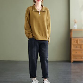 このハーフジッププルオーバーは、可愛い系からスポーティーまで様々なスタイルに合わせやすい大人女子の必須アイテム!一枚で主役級の存在感を放つことができます。ぜひお気に入りのコーディネートに取り入れて、オシャレ上手なあなたを演出してください。