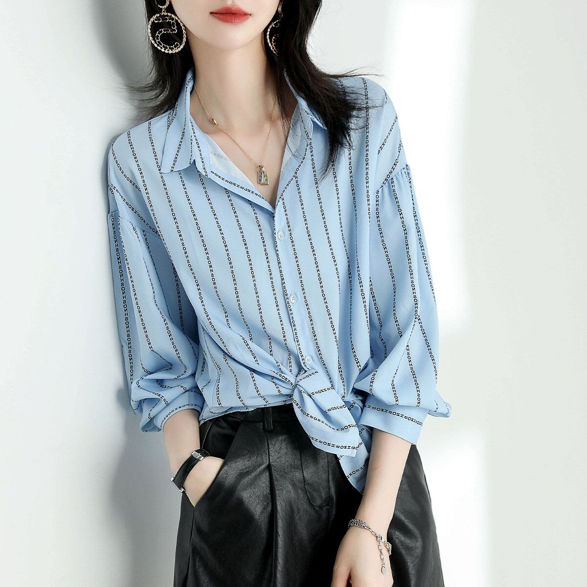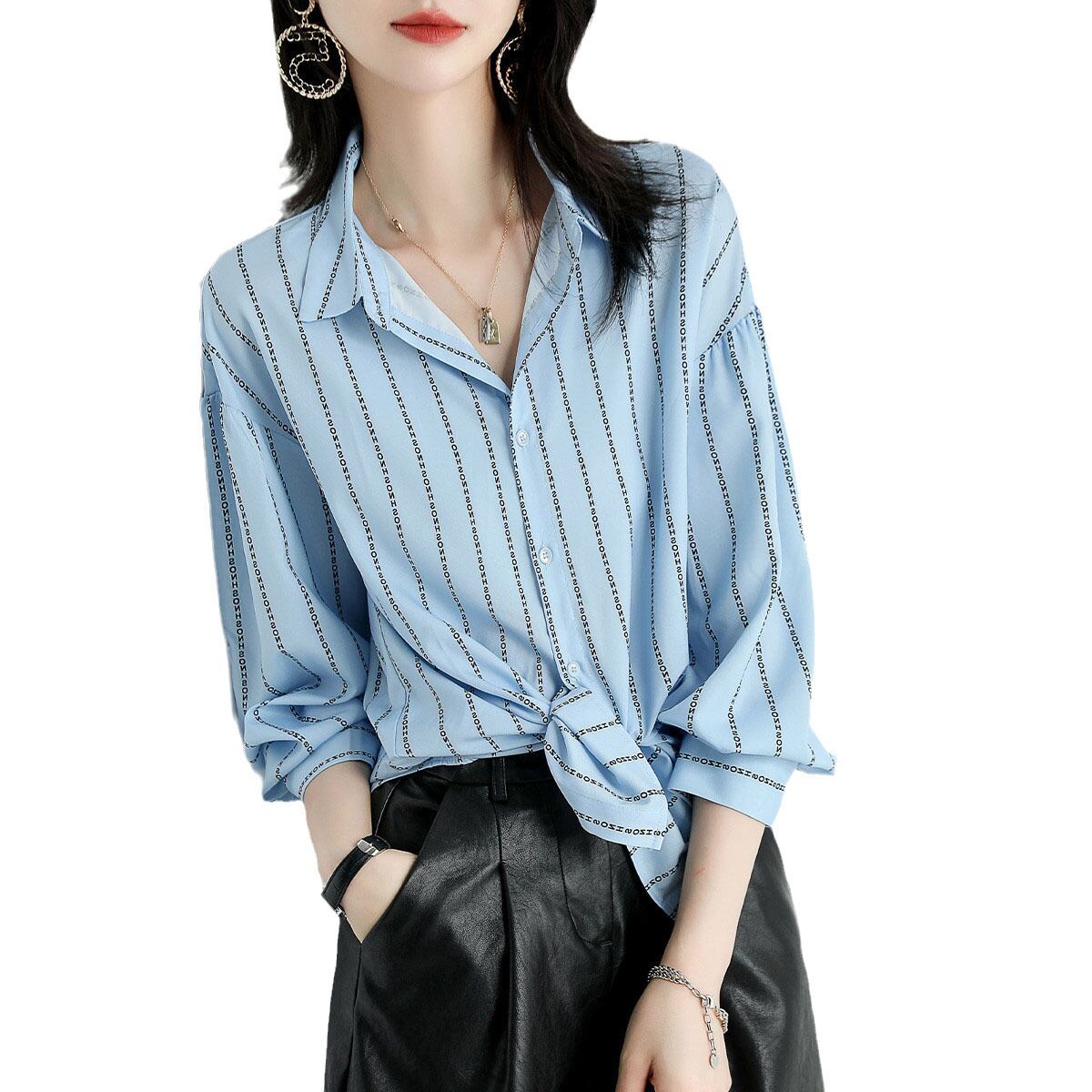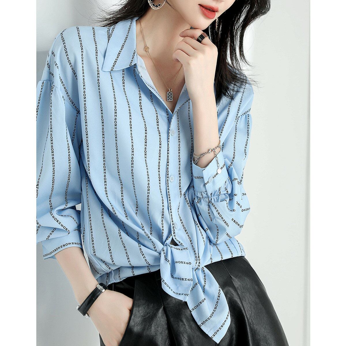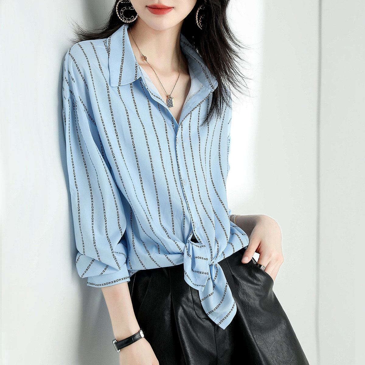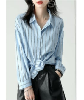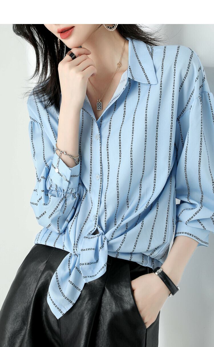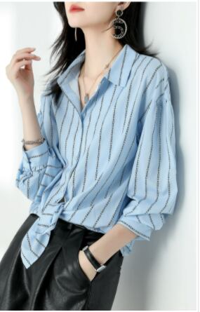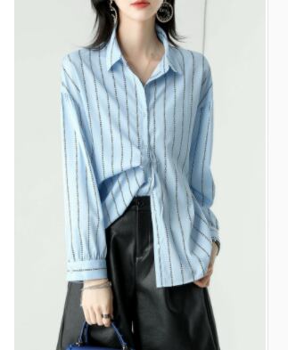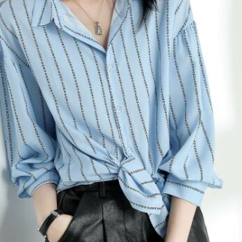 ストライプシャツ トップス シャツ ブラウス カジュアル ブルー 青 レギュラー丈 袖あり 長袖 襟付き ストレート シングルブレスト ボタン ポリエステル 大人女子 大人 上品 おしゃれ デイリーウェア レトロ レトロ風 こなれ感 個性的 デザイン 主役級 存在感 柄 ストライプ 縞模様 ボーダー 春 スプリング 冬 ウインター 20代 10代 30代 40代 レディース 女性用 オフィス ビジネス OL 通勤 学生 学校 通学 トレンド M L XL 2XL