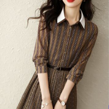 シャツワンピース クラシック ひざ丈 袖あり 長袖 襟付き Aライン スリム 細身 タイト ボタン ベルト ポリエステル 大人女子 大人 上品 おしゃれ エレガント デイリーウェア レトロ レトロ風 こなれ感 個性的 デザイン 主役級 存在感 ストライプ 縞模様 ボーダー 春 スプリング 秋 オータム 20代 30代 レディース 女性用 オフィス ビジネス OL 通勤 学生 学校 通学 デート お出かけ 女子会 食事会 S M L XL 大人カラー