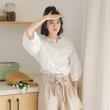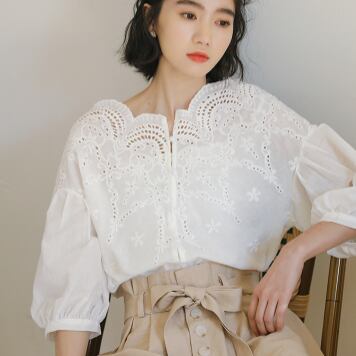 飽きのこないシンプルなデザインに、フェミニンなレースがアクセントになったレースシャツです。スリムなシルエットで細身に見え、女性らしい雰囲気を演出してくれます。着心地も抜群で、デートやパーティーなど、どんなシーンでも活躍してくれます。