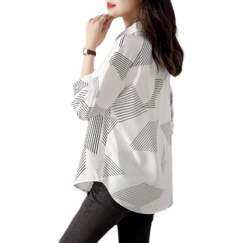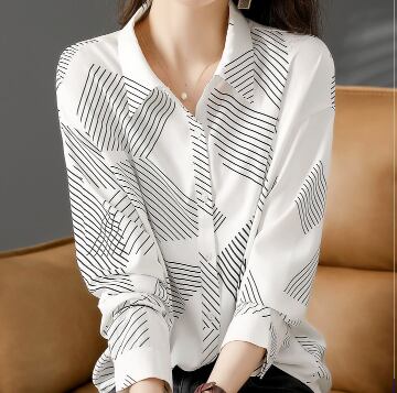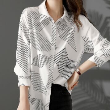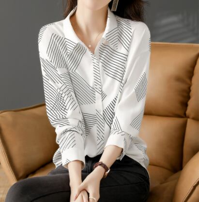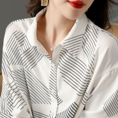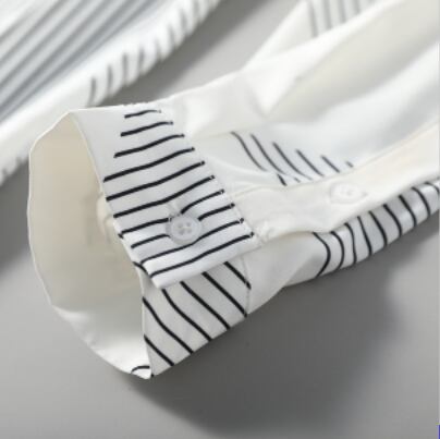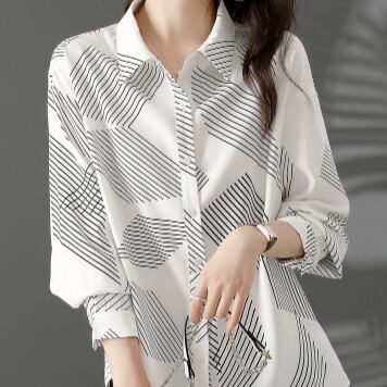 カジュアルシャツ トップス シャツ ブラウス カジュアル ホワイト 白 レギュラー丈 袖あり 長袖 襟付き ストレート シングルブレスト ボタン ポリエステル 大人女子 大人 上品 おしゃれ きれいめ シンプル デイリーウェア レトロ レトロ風 こなれ感 個性的 デザイン 主役級 存在感 柄 ストライプ 縞模様 ボーダー ライン 春 スプリング 秋 オータム 20代 30代 40代 レディース 女性用 オフィス ビジネス OL 通勤 学生 学校 通学 M L XL 2XL